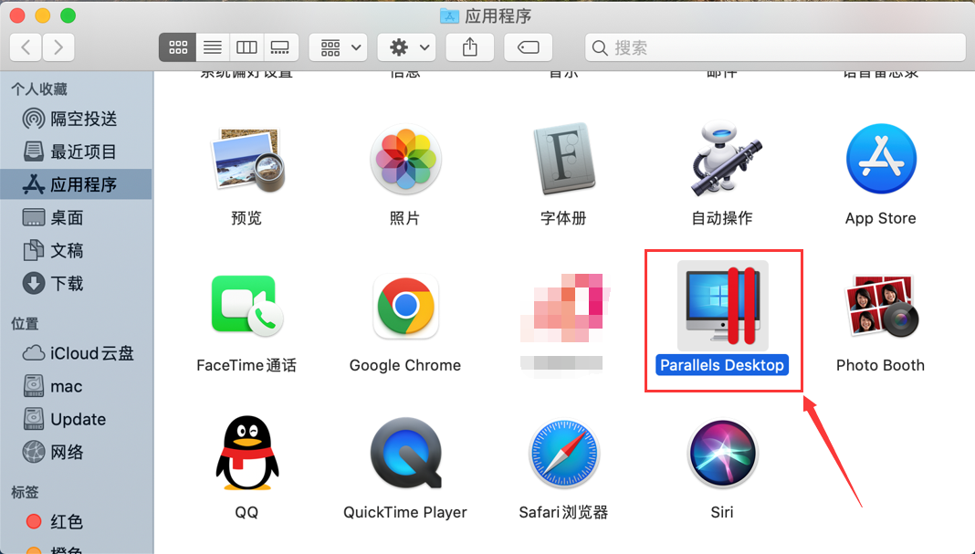 1-应用程序里点开 parallels desktop 虚拟机图标。