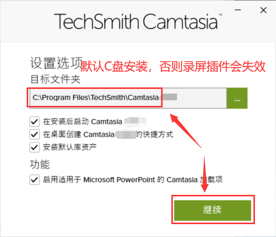 4-安装路径默认选C盘不要去修改,然后点击继续。