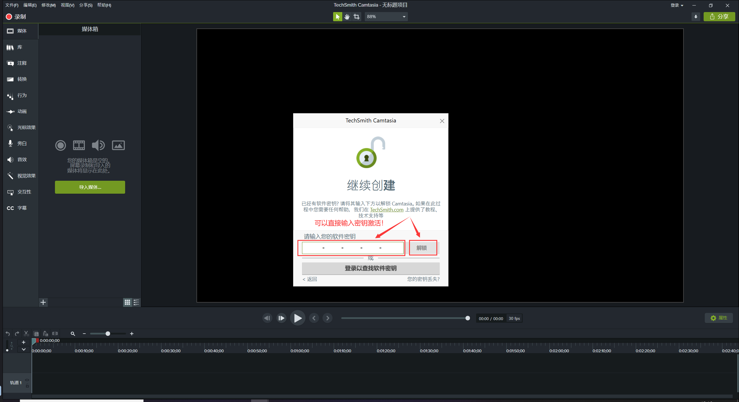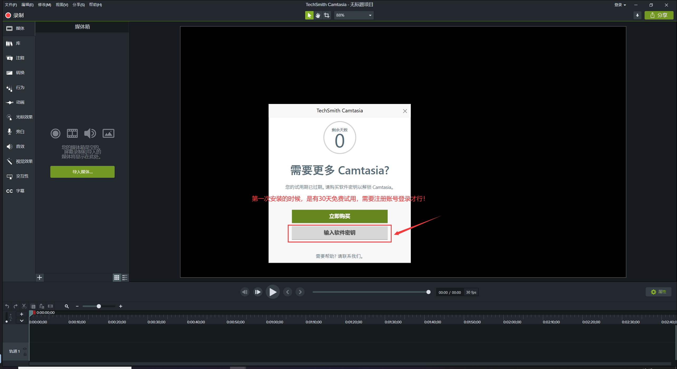 9-选择输入软件密钥(电脑首次安装是有30天免费试用的,需要登录账号验证后才可试用,本次教程直接以输入输入密钥举例。)