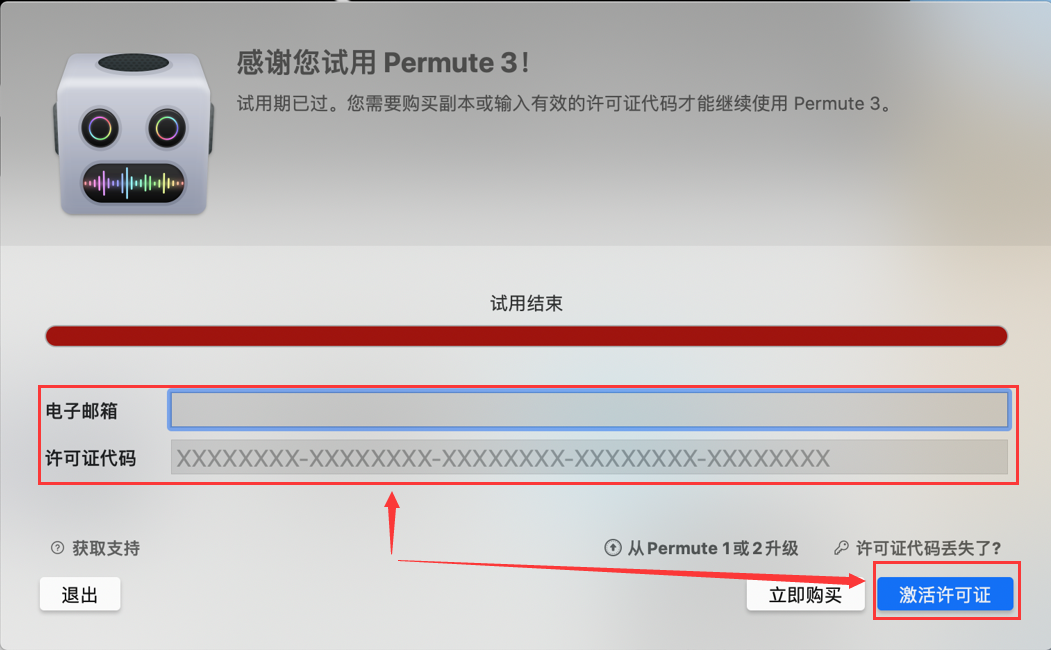 6-如实填写自己的邮箱和购买领取到的许可证代码,点击激活许可证,就完成啦~