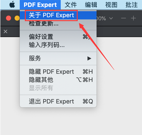 8-注意,我们销售的是pdf expert 2版本,有用户会下错版本的,所以安装后,我们可以点击左上角的关于 pdf expert选项。