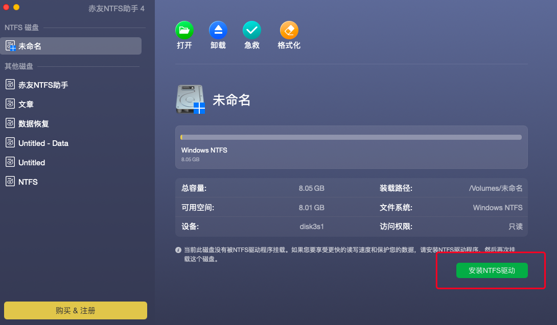 11-软件首页的右下角,点击“安装 NTFS 驱动”