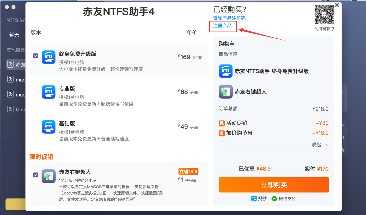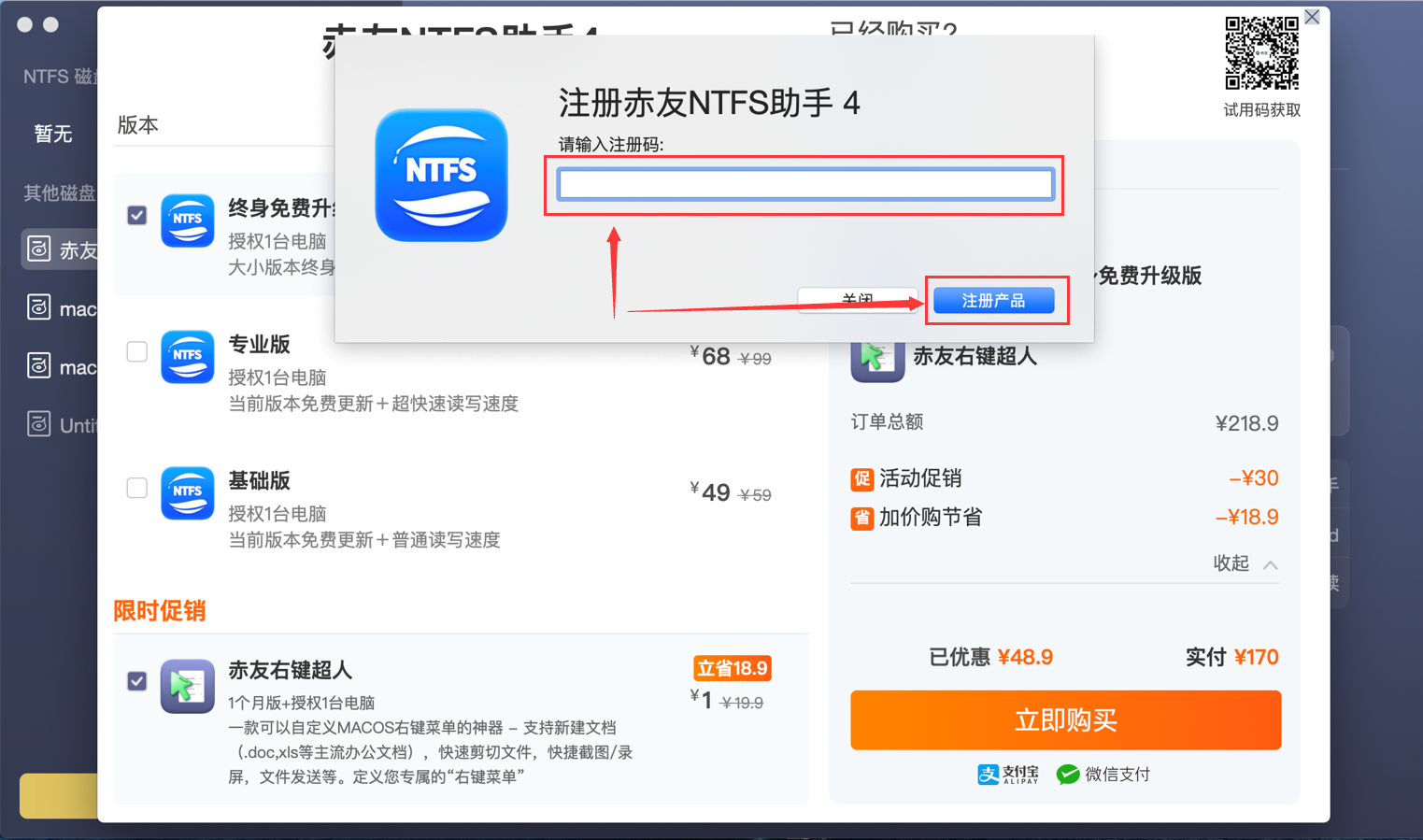 10-按下图弹出的弹窗,复制购买领取到的注册码粘贴输入,点击注册产品。
